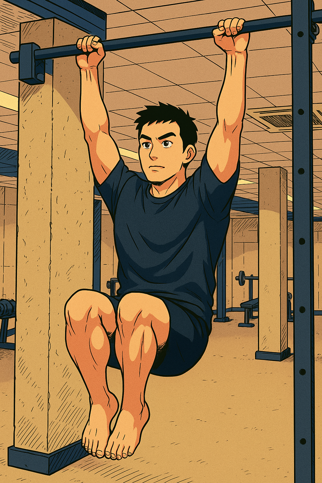 공간은 조금 폐쇄적이었지만, 에어컨 덕분에 의외로 시원하고 조용했다.그곳에서 나는 20분 동안 철봉에 매달리고, 복부에 힘을 주는 동작을 반복했다.